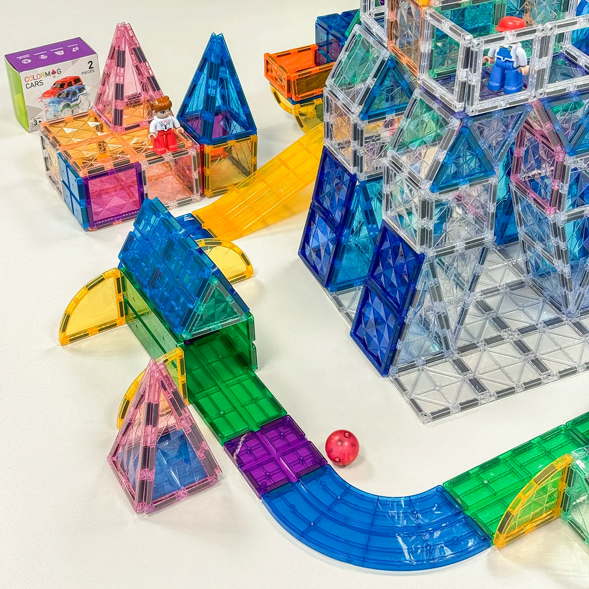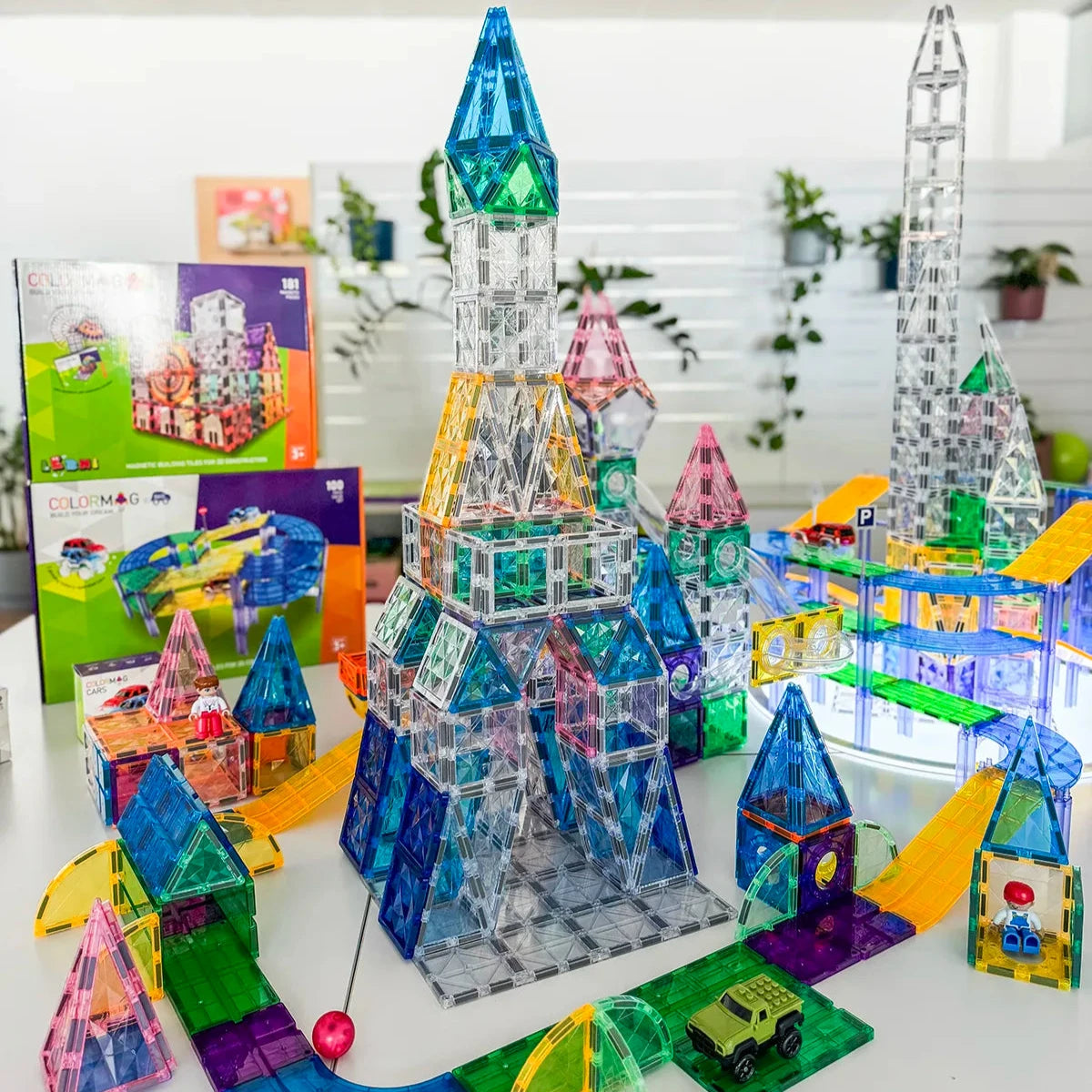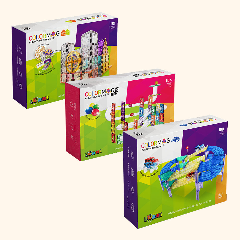 Predstavte si mesto, kde sa pretekárske autá rútia po vašich vlastných dráhach, ikonické budovy z celého sveta sa týčia nad ulicami a stavby sa prelínajú s rôznymi prekážkami, ktoré ste sami vytvorili. To všetko môžete mať u vás doma – a ešte omnoho viac! V balení vás čaká viac ako 280 dielikov, magnetická podložka, 2 autíčka doplnkové nálepky či svietiace guľôčky. Colormag City nie je obyčajné mesto - je to svet plný dobroružstva!