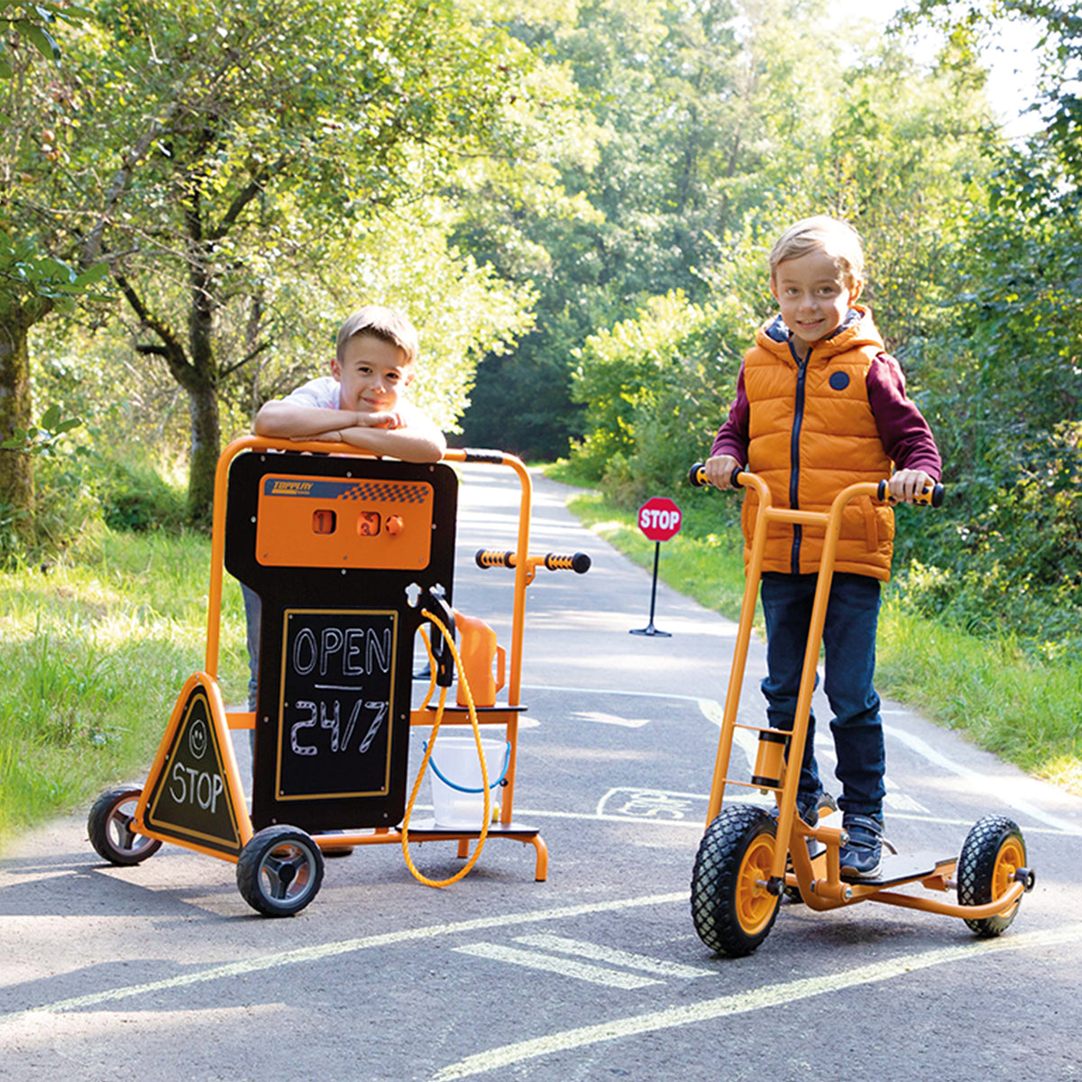 Mobilné čerpacie a servisné stanovište je ideálnym doplnkom k vozidlám série TopTrike: deti môžu hravo „tankovať“, opravovať, prepravovať pomôcky a zapájať sa do úloh technickej a role-play hry. Stanica je vybavená voľne pojazdnými kolieskami, 2 „tankovacími pištoľami“, otáčacími ciferníkmi (napr. na ocenenia či počet kôl pri pretekoch), prednými a zadnými prístupmi pre viac detí a popisovacími tabuľami na kriedu.