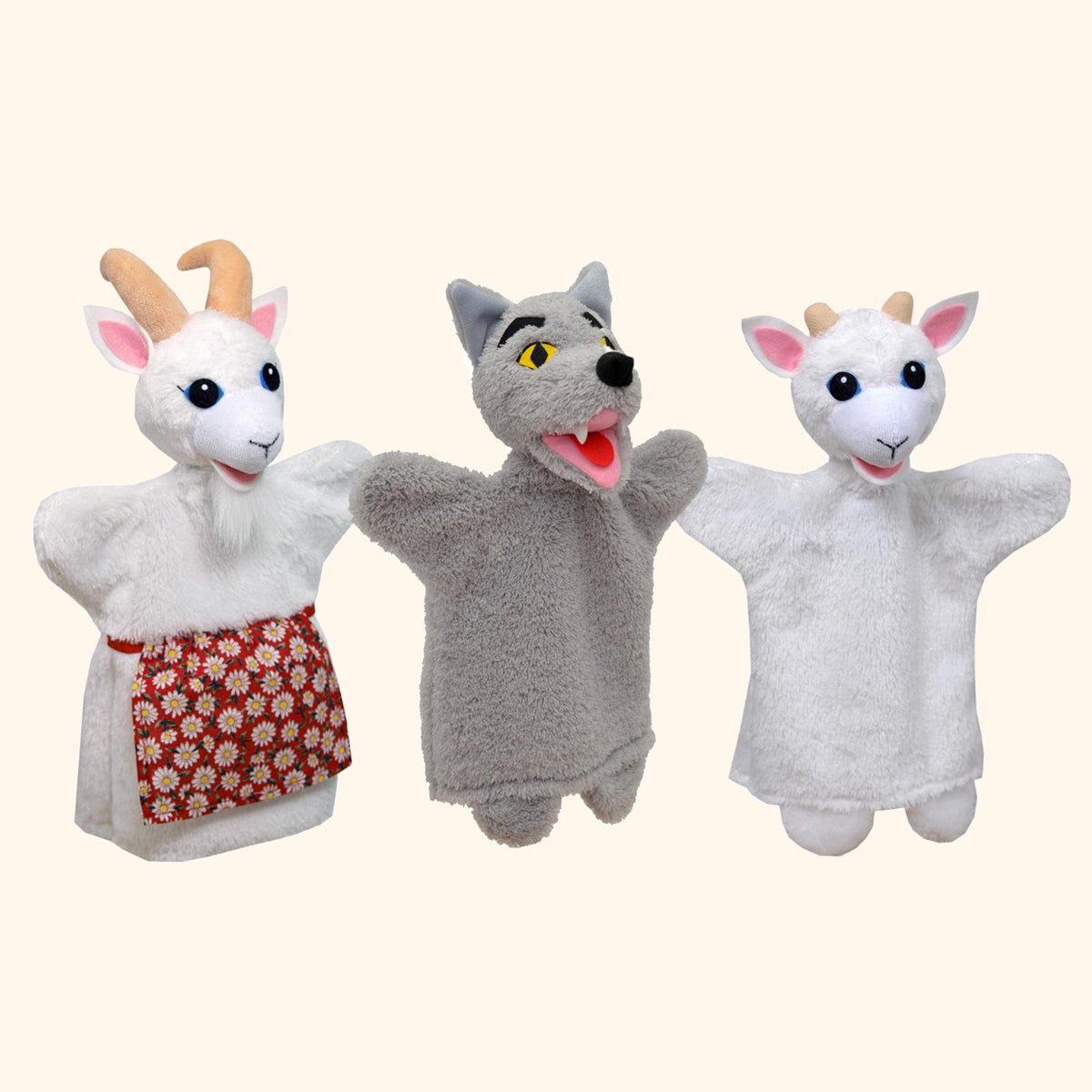 Komu môžete otvoriť, keď ste doma osamote? Nikomu! Veď vlk si nechá vykuť tenučký hlások, aby zjedol všetky kozliatka. Vymyslite si so sadou maňušiek rôzne dobrodružstvá a príbehy a porozprávajte ich svojmu dieťatku. Hranie s bábkami výborne stimuluje ich fantáziu a kreativitu a tiež im pomáha začať osmeliť sa na verejnosti.