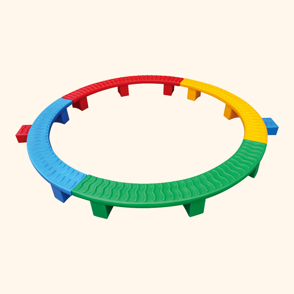Farebný plastový mostík v tvare kruhu podporuje rovnováhu, koordináciu a stabilitu detí. Vďaka svojmu modulárnemu dizajnu možno jednotlivé časti spájať do kruhu alebo rôznych tvarov – podľa priestoru a úrovne zručnosti detí.