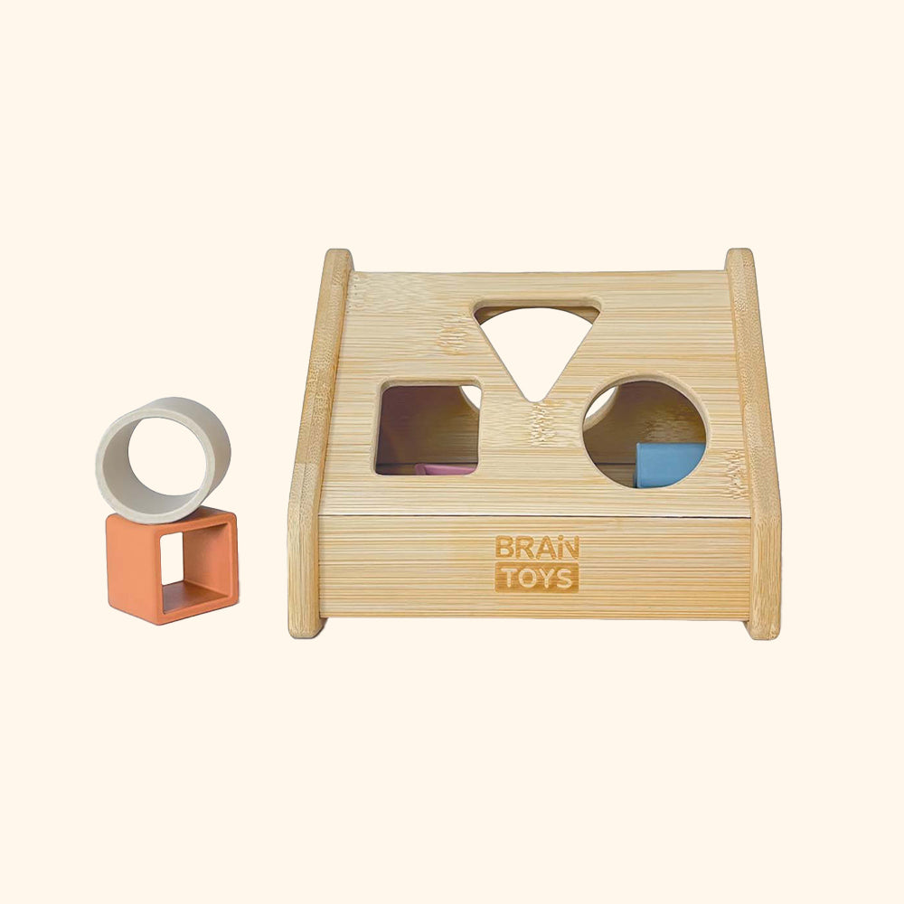 bambusovú vkladačku s geometrickými tvarmi (17cm x 14cm x 14,5cm)