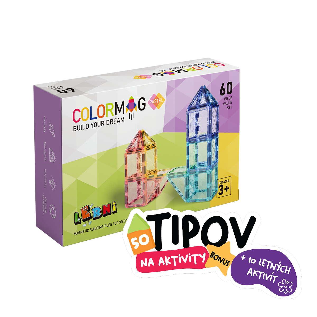 Objavte novinku, ktorá rozžiari každú detskú izbu – magnetickú stavebnicu Colormag 60 ks v jemných pastelových farbách! Vstúpte do sveta nekonečnej kreativity, kde deti objavujú radosť z tvorenia bez hraníc. Táto všestranná stavebnica prináša nekonečné možnosti na hru – od úžasných 2D obrazcov až po fascinujúce 3D stavby. Stavebnica so 60 dielikmi je ideálna na začiatok alebo ako doplnok k väčším stavebným setom. S touto stavebnicou sa deti nikdy neprestanú hrať – fantázia nemá hranice!
