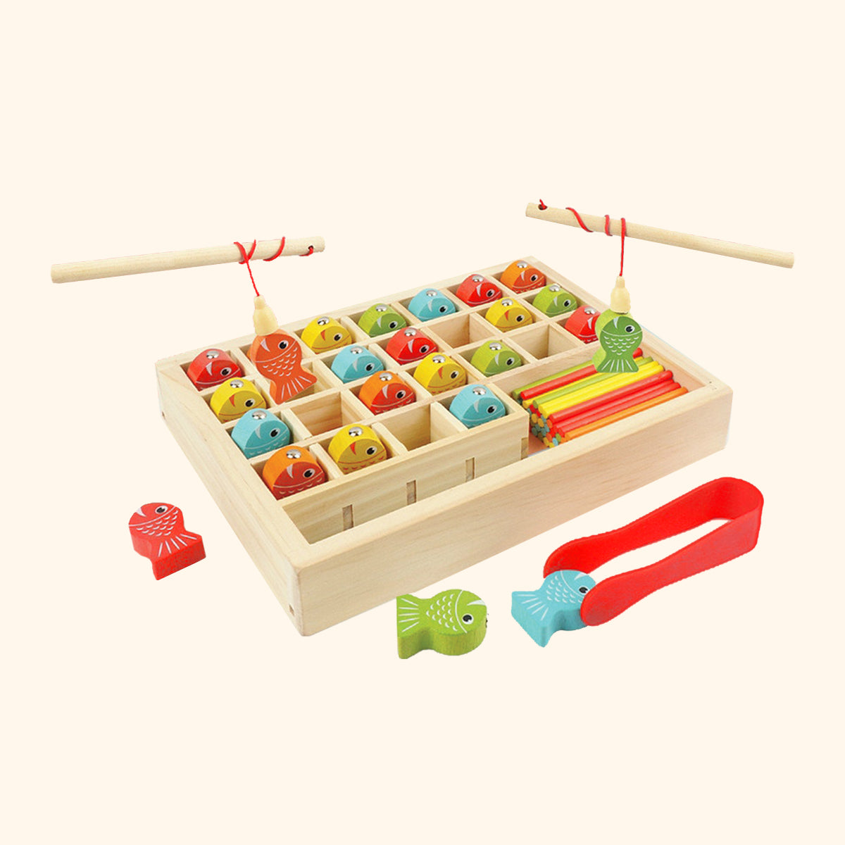Staršie deti môžu súťažiť, kto vyberie najvyššiu hodnotu na rybkách, samozrejme je potrebné nie len šikovnosť rúk ale deti musia zvládnuť aj matematické úlohy. Rátanie pre najmenších - Vyberte rôzny počet farebných drevených paličiek a požiadajte deti, aby ulovili rybky rovnakej farby a v rovnakom počte.