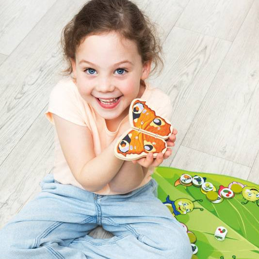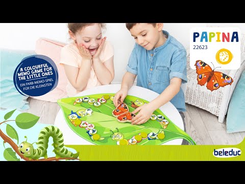 Hladné húsenice túžia po chutných plodoch — práve v tejto hre ich deti živia a pozorujú ich premenu na krásne motýle. Papina kombinuje prvky pamäťovej hry s témou metamorfózy a vyvoláva v deťoch záujem o prírodu.