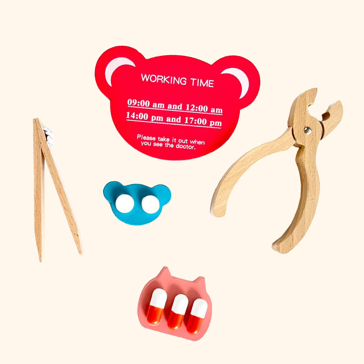 Táto sada obsahuje všetko dôležité, čo malý lekár potrebuje. Či už sú to kvalitné drevené lekárske pomôcky alebo preukaz pre pacienta, sada je zárukou hodín plných zábavy a vedomostí, ktoré vaše deti očaria a inšpirujú.