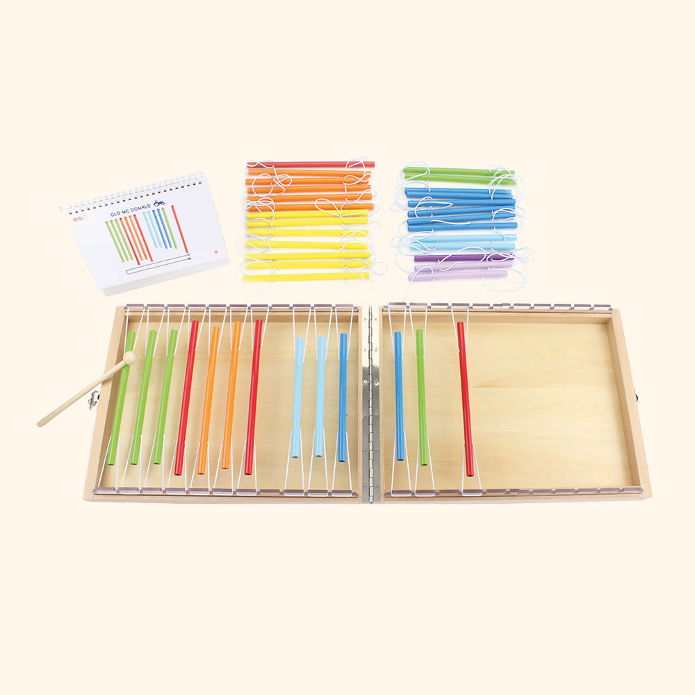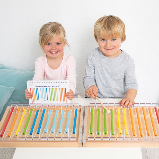 Deti sú prostredníctvom tejto hudobnej sady hravou formou uvedené do sveta tónov a prvých melódií. Vyše 39 tónových rúrok v drevenej krabici umožňuje každému dieťaťu okamžite začať hrať – aj bez predchádzajúcich znalostí nôt.
