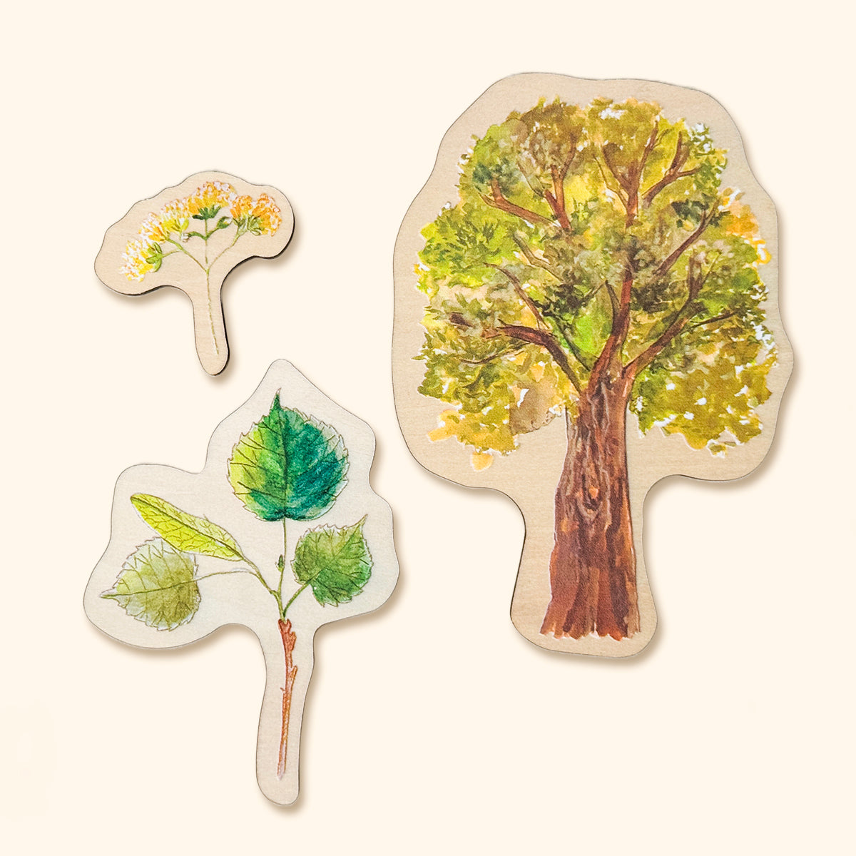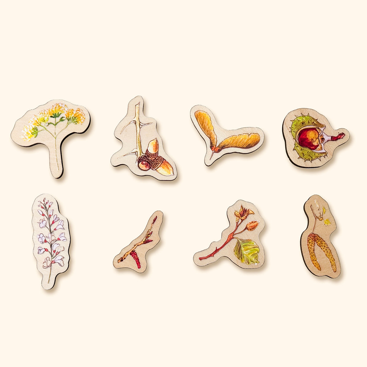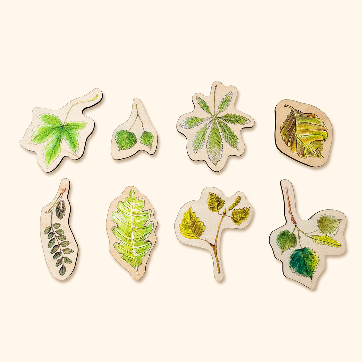 - drevené puzzle s tromi vrstvami 8 druhov stromov