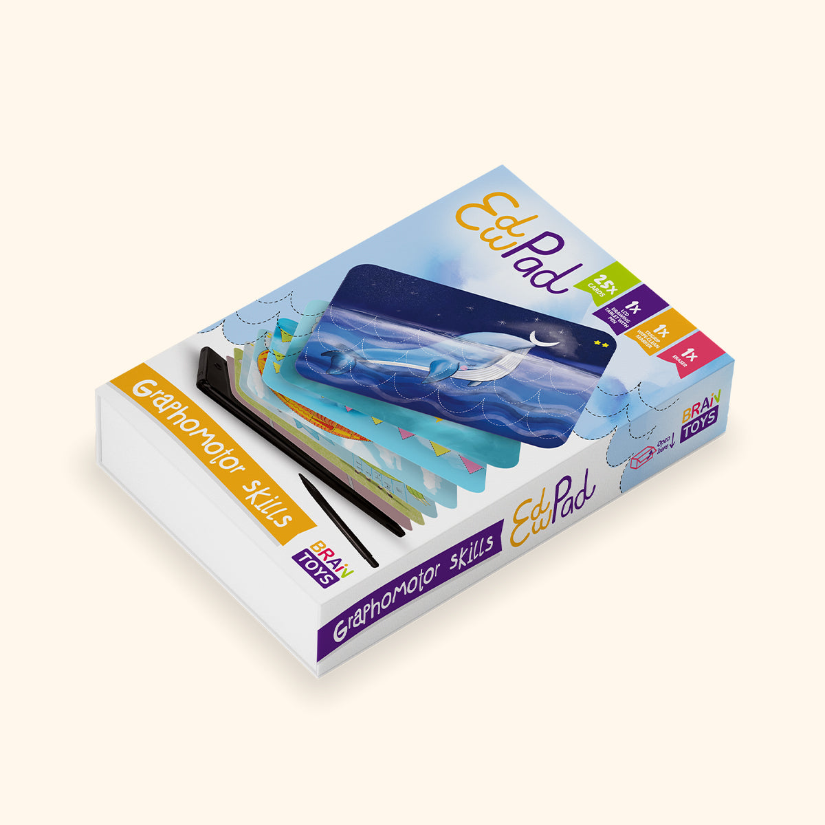 EduPad od BrainToys je inovatívny setnavrhnutý tak, aby deťom pomáhal rozvíjať jemnú motoriku a grafomotorické zručnosti hravou formou. Táto revolučná pomôcka kombinuje digitálny tablet s kartami, ktoré sú plné zábavných a vzdelávacích úloh. EduPad deti nielen zabaví, ale aj prirodzene pripraví na písanie a podporí ich sústredenie, tvorivosť a zručnosti.