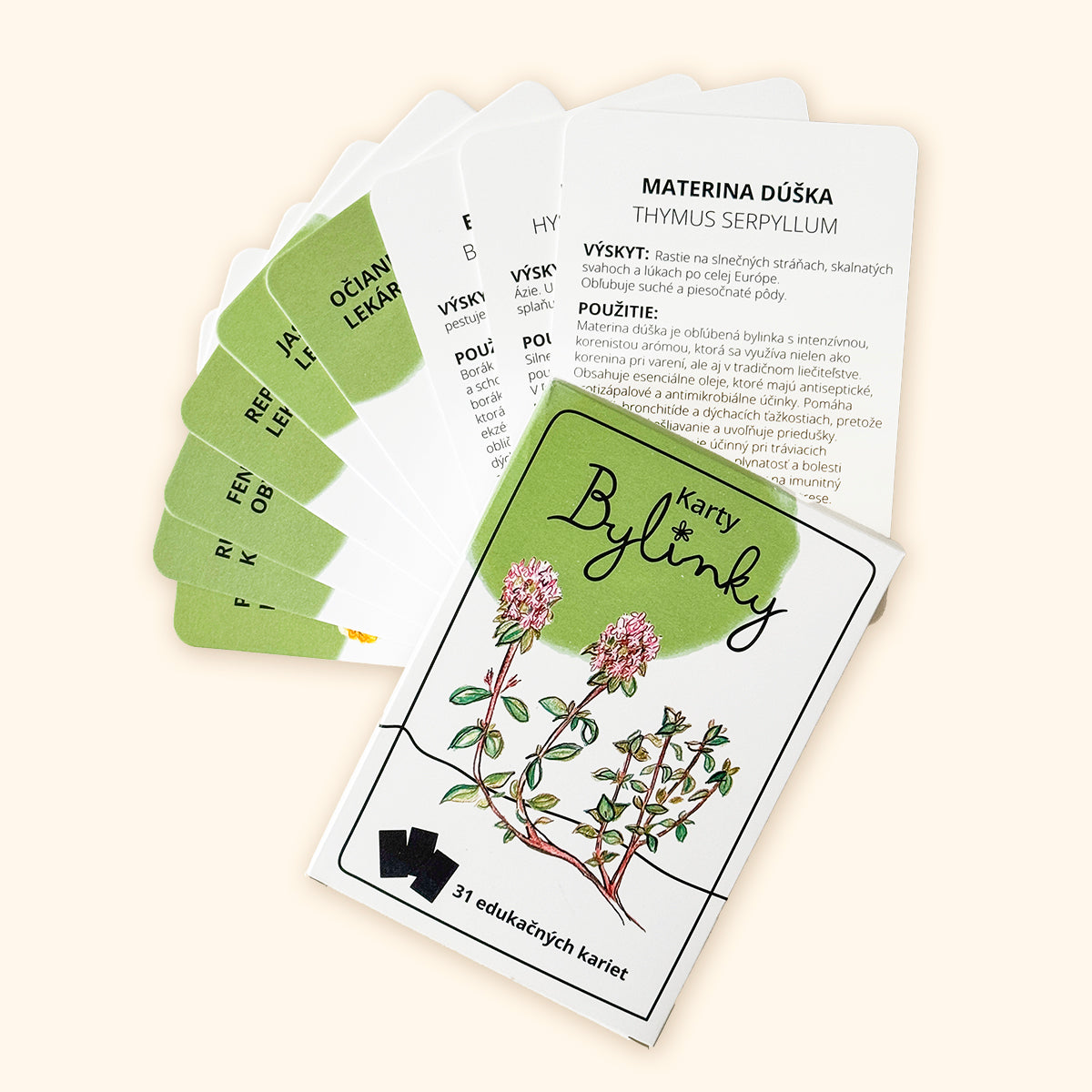 - 31 edukačných kariet s bylinkami a ich praktickým využitím