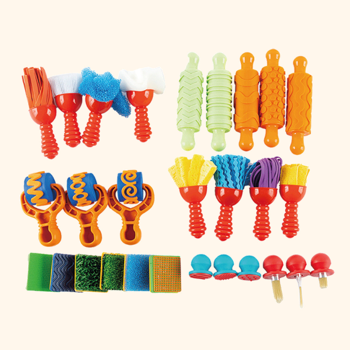 Objavte kreativitu v plnej sile s touto multifunkčnou sadou na tvorivé aktivity! Sada Art Toolkit Set obsahuje 28 kvalitných dielov určených na maľovanie, rolovanie, otláčanie a tvorbu vzorov – ideálne pre skupinové aktivity v škôlkach alebo doma.