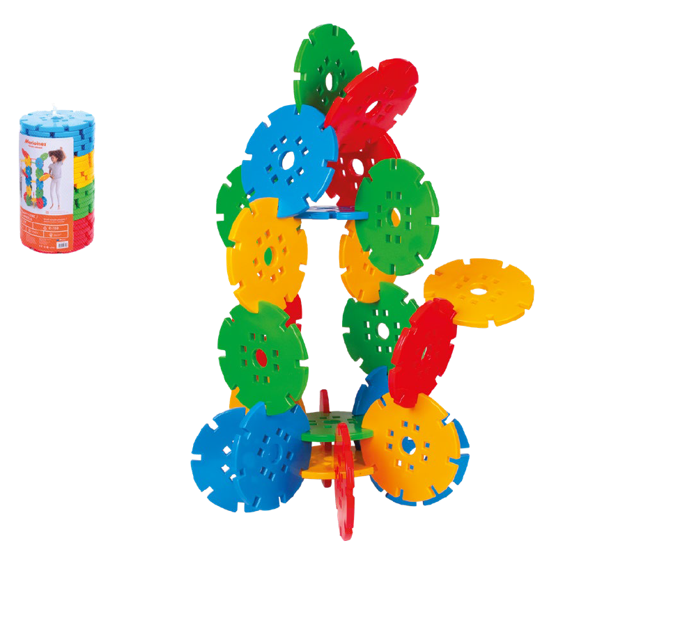 Deti môžu dieliky spájať do kvetinových vzorov, reťazí či 3D tvarov. Pri hre môžu triediť farby, počítať dieliky alebo vytvárať tematické obrázky – lúku, venček či záhon plný kvetov.