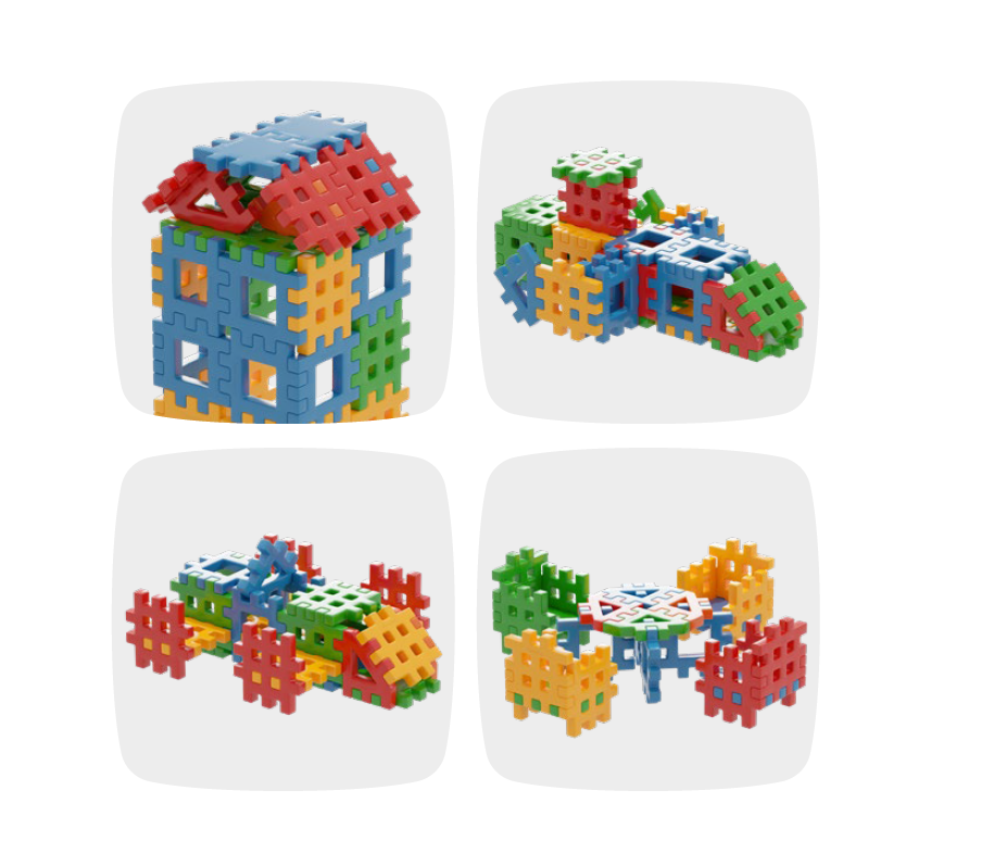 Deti môžu kocky spájať do plošných vzorov alebo trojrozmerných stavieb. Pri hre sa učia rozoznávať tvary a farby, počítať dieliky alebo tvoriť vlastné kreatívne projekty.