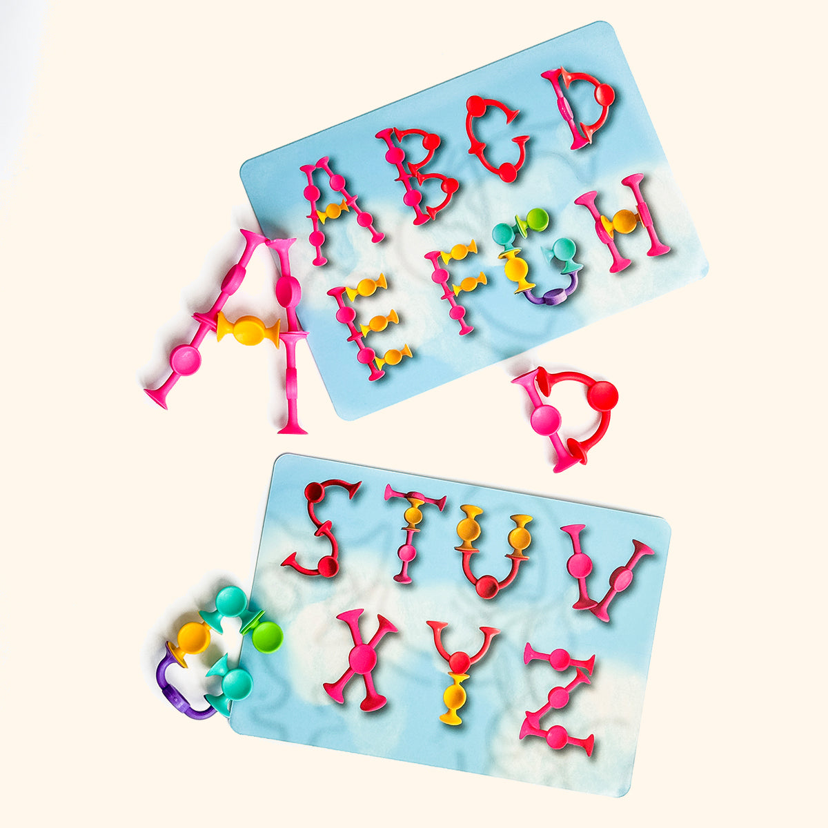 - pomáhajú pri spoznávaní čísel, ale aj abecedy, ktorú si podľa predlohy vedia z prísaviek vyskladať,