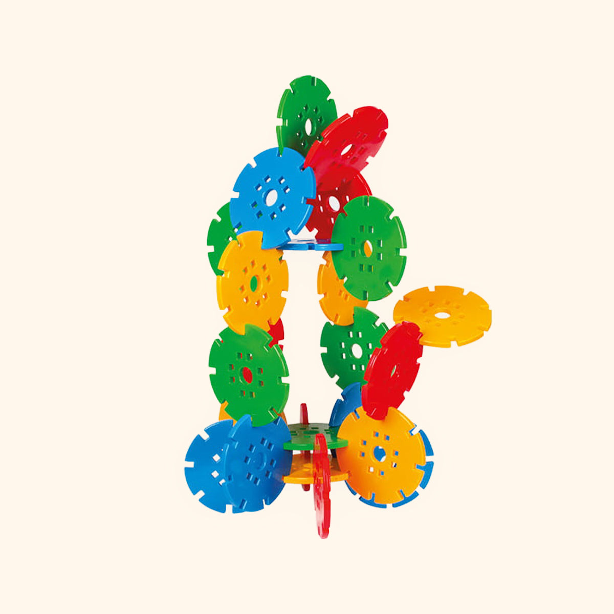 Deti môžu dieliky spájať do kvetinových vzorov, reťazí či 3D tvarov. Pri hre môžu triediť farby, počítať dieliky alebo vytvárať tematické obrázky – lúku, venček či záhon plný kvetov.