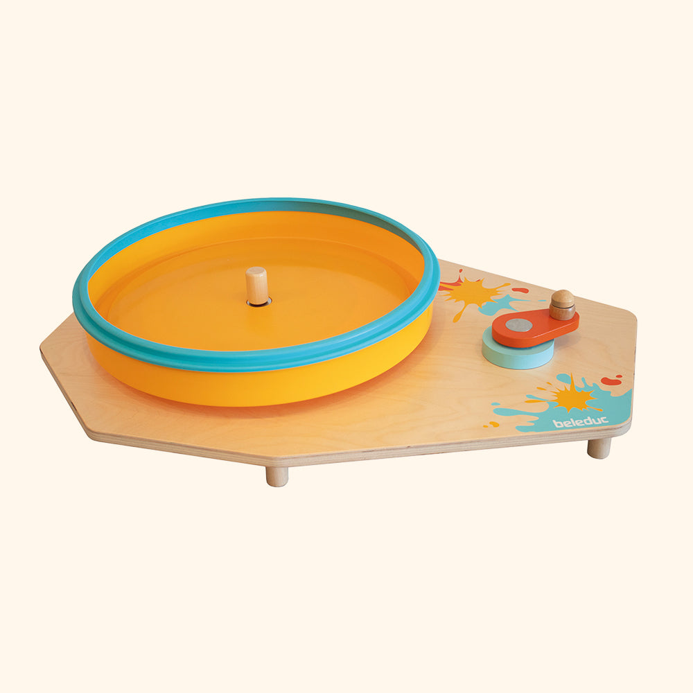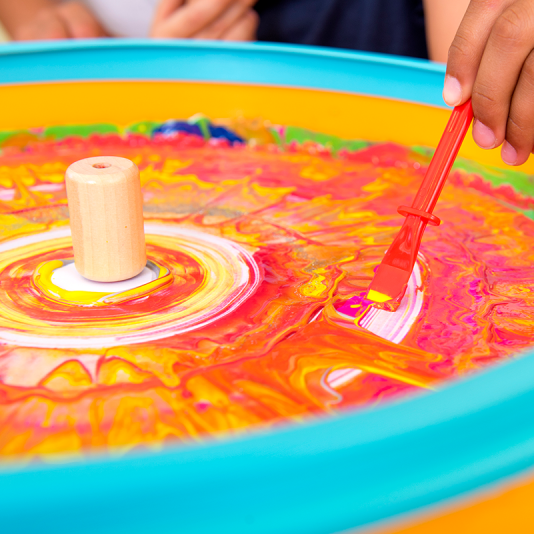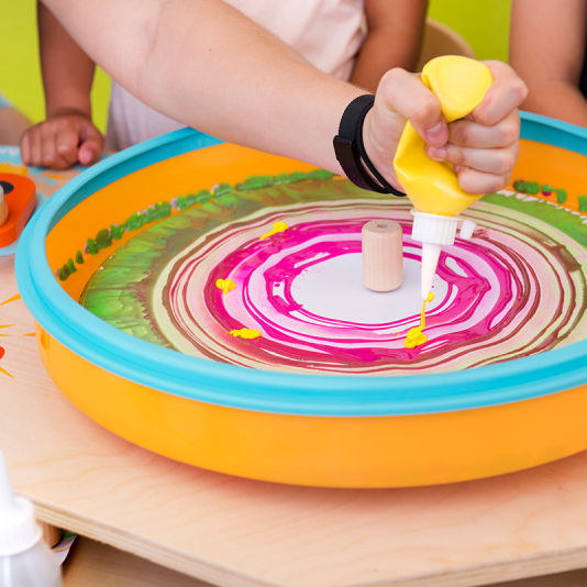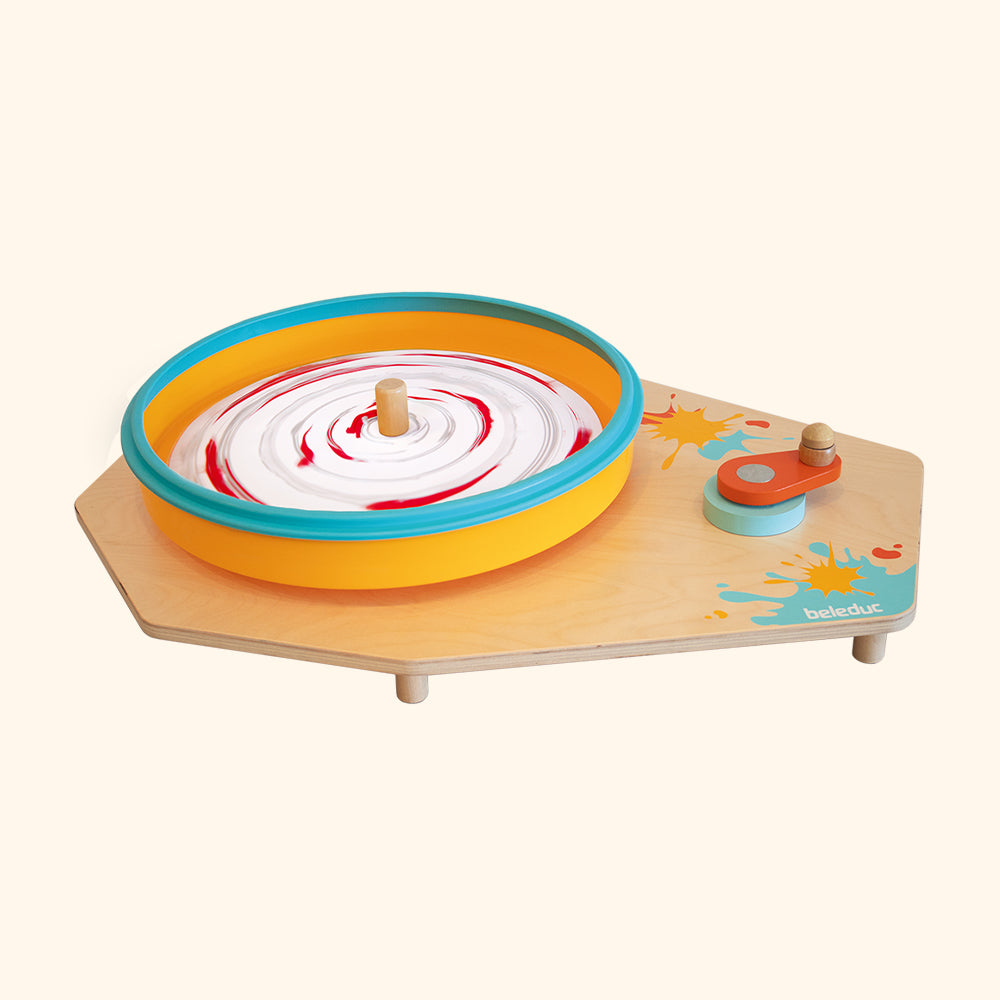 Objavte ako farby vytvárajú kúzla vďaka našej centrifúge Flying Colours — deti aplikujú farbu na papier a otáčaním rúčky zisťujú, ako sa farby roztekajú, miešajú a vytvárajú netradičné vzory. Rýchlosťou otáčania môžu sami ovplyvniť výsledný obraz, čo podporuje ich zvedavosť, vizuálne vnímanie a tvorivosť.