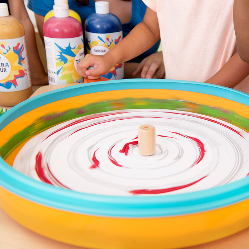 Položte papier na spinner Flying Colours, naneste farbu a spustite otáčanie. Sledujte, ako farby vytvárajú jemné vzory a kombinácie. Môžete striedať farby, vrstvy či rýchlosť otáčania, čím vznikajú originálne výtvarné diela.
