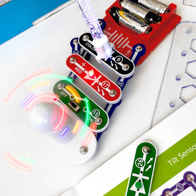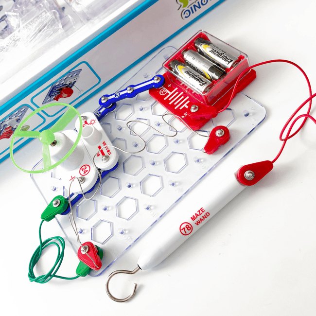 Elektronická stavebnica má 33 rôznych častí, z ktorých môžete vytvárať bezpečné a veľmi zaujímavé pokusy pomocou elektrickej energie. Potrebovať budete tri AA batérie a priložený návod, kde uvidíte presne, ako vytvoriť schému, aby vaše pokusy fungovali.