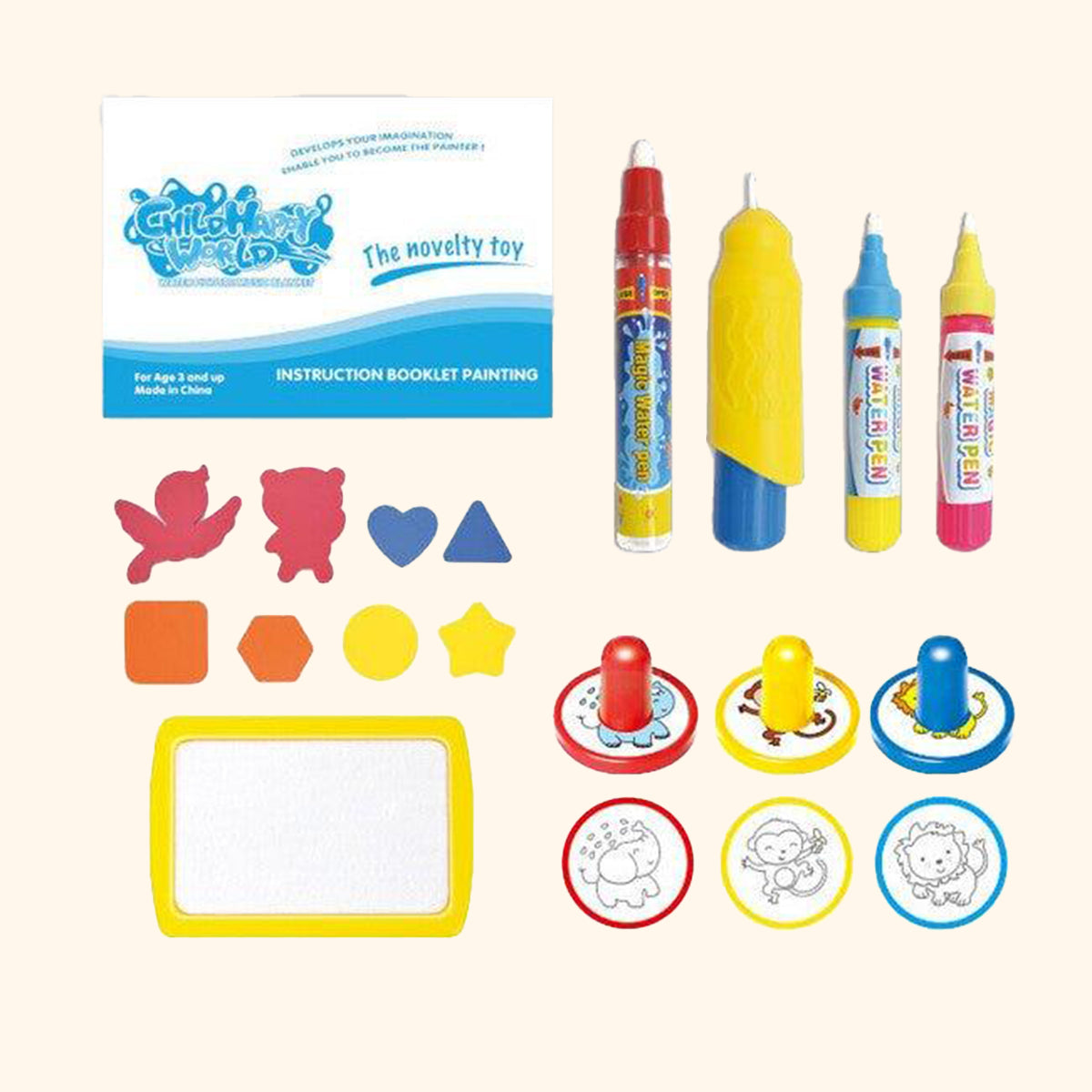 Podložka na maľovanie vodou funguje podobne ako obľúbené omaľovánky Hurá voda! Stačí použiť čistú vodu, naliať ju do špeciálneho pera alebo na podušky pre pečiatky a začať tvoriť. Pri kontakte s podložkou sa objavia farby. Je to taký malý zázrak, ktorý fascinuje deti aj dospelých.