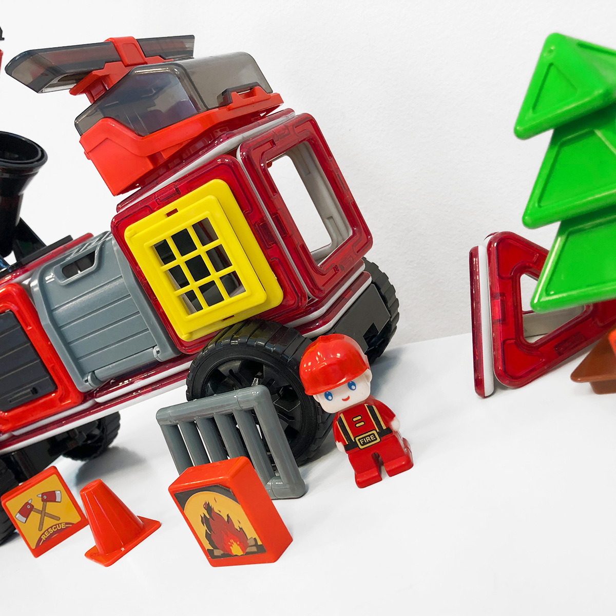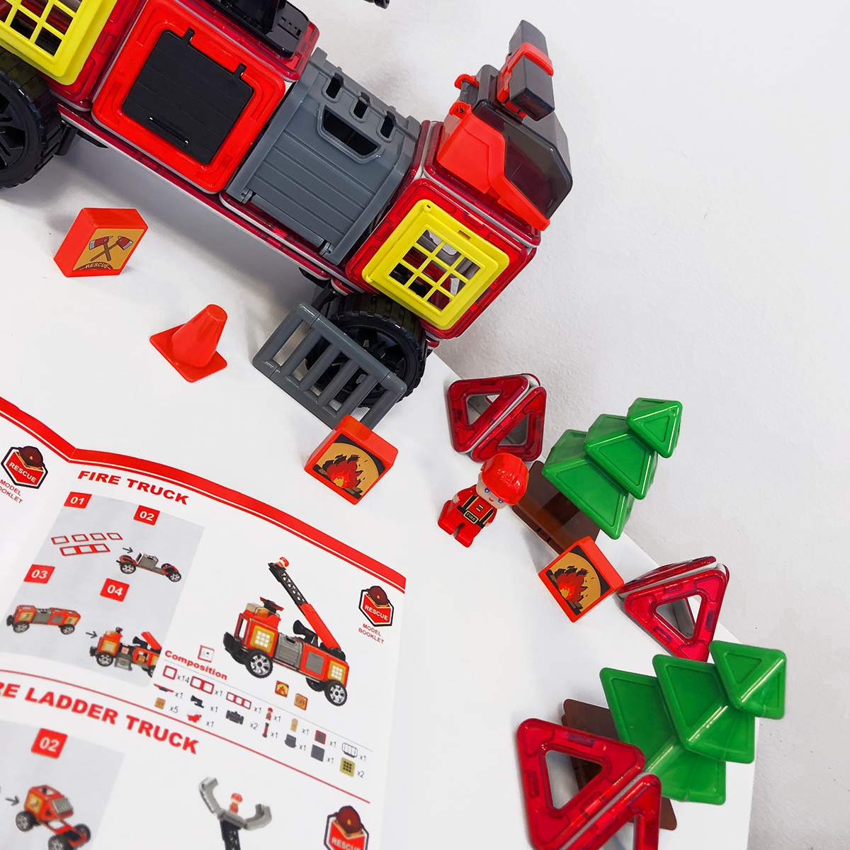 Začala už aj u vás doba magnetická? Táto magnetická stavebnica s témou hasičov vás prenesie priamo do sveta akcie, záchrany a dobrodružstva. Deti si môžu postaviť vlastnú hasičskú stanicu, zásahové vozidlá alebo celé mestečko, v ktorom sa stanú odvážnymi hrdinami.