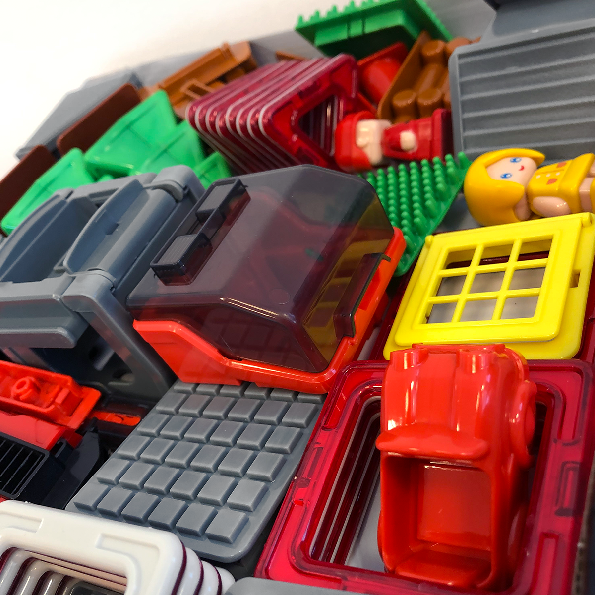 Rozbalené : Magnetická stavebnica HASIČI 84 kusov