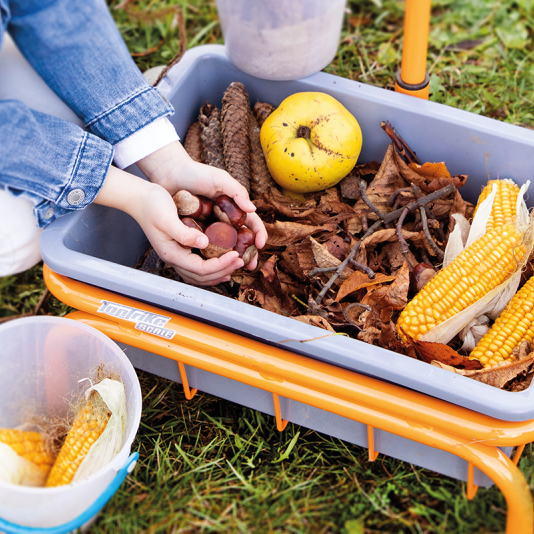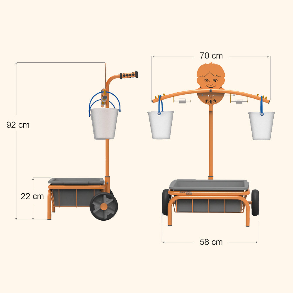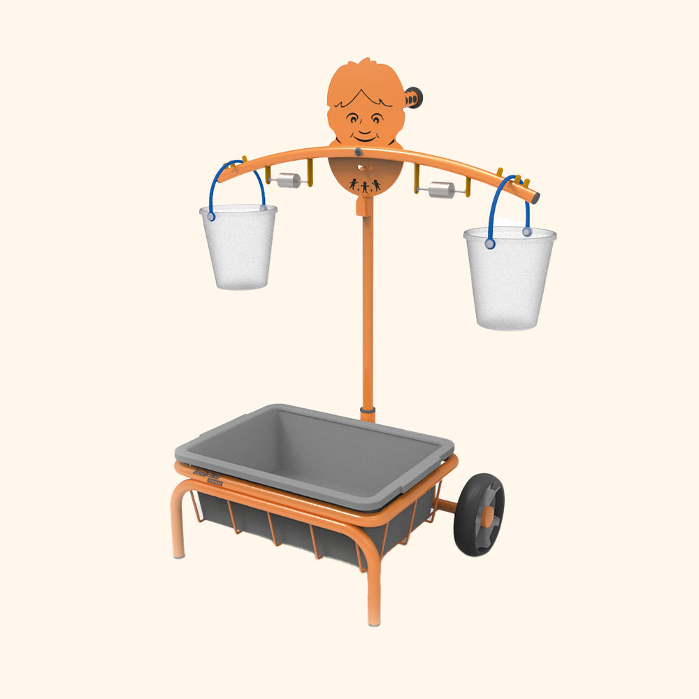 Spojte hru s učením váhy a rovnováhy – Mobile Scale je pohyblivá váha, ktorú deti môžu používať doma i vonku. S integrovaným držadlom a kolieskami sa ľahko presúva a stimuluje objavovanie prostredníctvom merania materiálov.