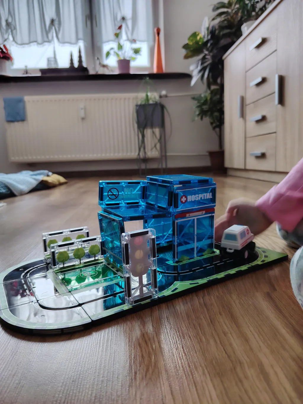 Magnetická stavebnica dcérku zaujala, stavia cesty a nemocnicu podľa rôznych tipov z letáku priloženého v krabici. Jediné mínus, že nemá viac dielikov. :)