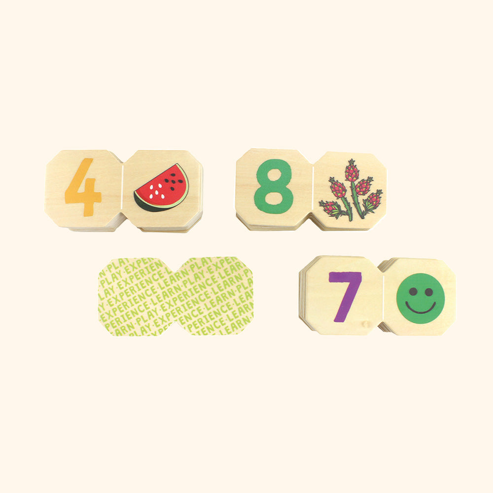 Hráči striedavo prikladajú karty – hľadajú také, kde číslo zodpovedá množstvu skrytému na obrázku. Ak nájdu zhodu, kartu položia a hra pokračuje, až kým sa nevypotia všetky karty.