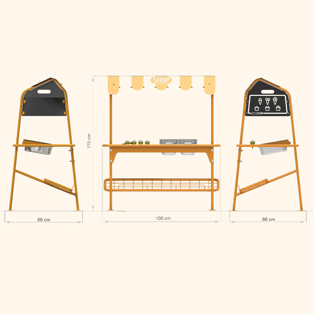 Vstúpte do sveta, kde jeden deň predávate zmrzlinu, ďalší deň ovocie či zeleninu! Roleplay Station “Ice Cream & Shop” umožňuje deťom hrať sa na predavača či zákazníka v stánku, rozvíjať komunikáciu a ľahko sa začleniť do hry.