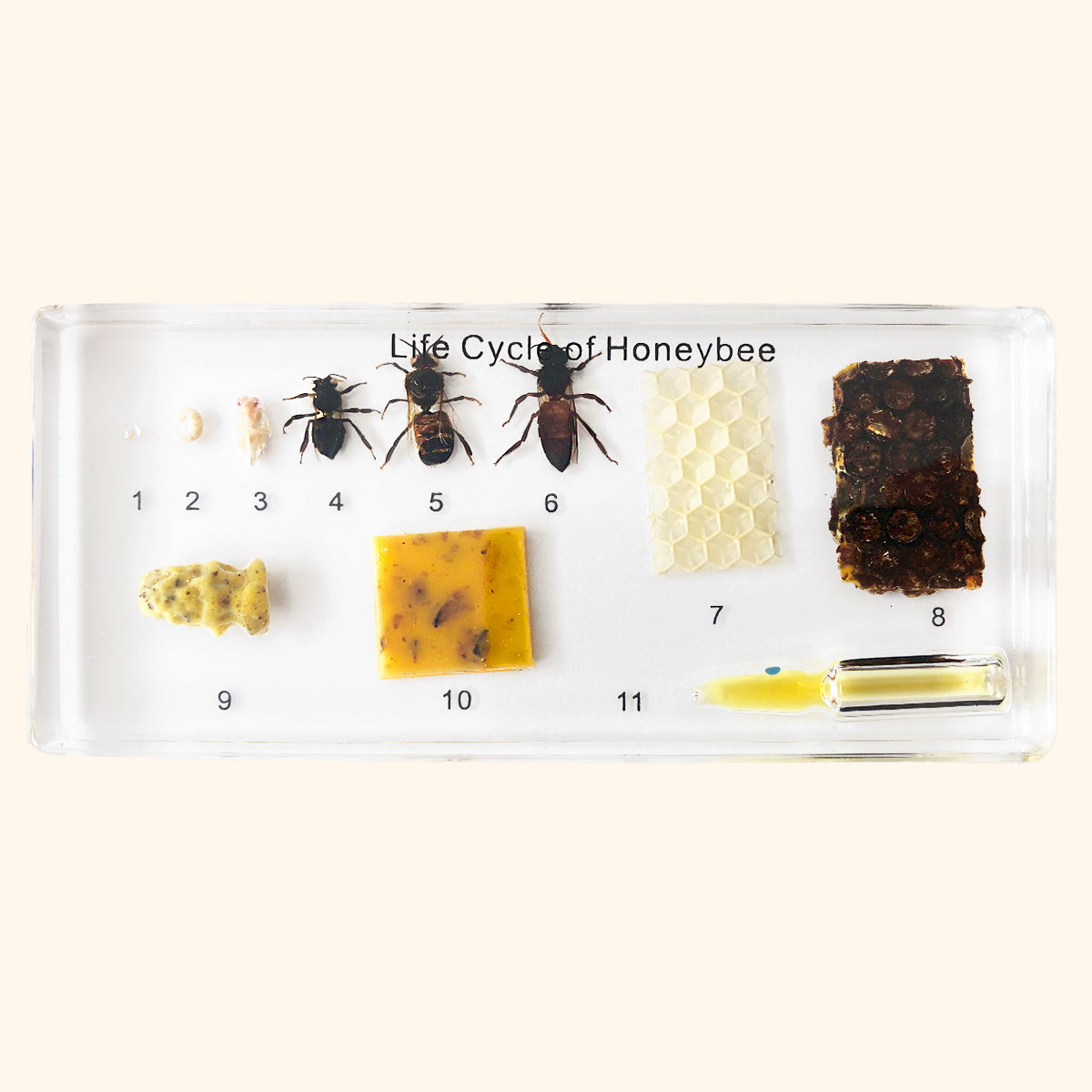 Zaliaty exemplár Vývoj včely medonosnej je unikátny spôsob ako zoznámiť deti s jednotlivými vývojovými štádiami včielok a tiež vidia, ako vzniká medík.